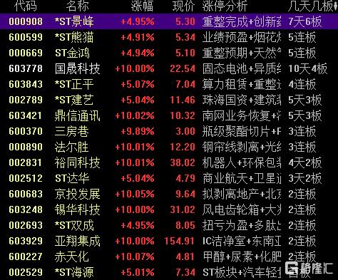 高位股方面,国晟科技10天4板,电网设备板块顺钠股份9天5板,化工股赤天化7天4板,法尔胜、三房巷3连板。