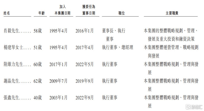 董事长肖毅今年58岁,并于2026年3月2日获任命为执行董事,他于1995年4月加入集团,担任华明制造的董事长。他毕业于苏州职业技术大学,主修机械制造工艺与设备专业。
