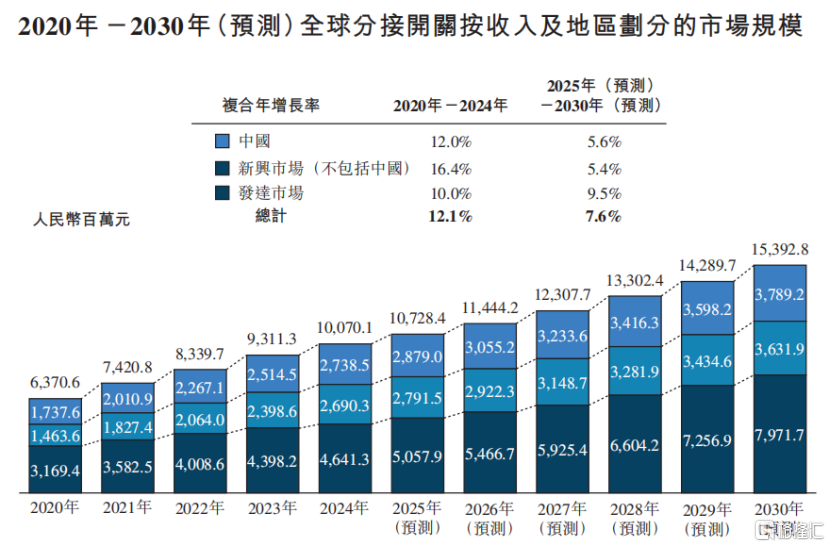 全球分接开关按收入及地区划分的市场规模,来源:招股书