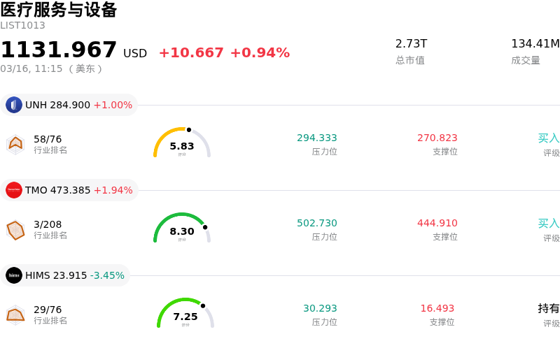 史赛克 (SYK) 盘中上涨3.15%, 所属行业医疗服务与设备上涨0.94% ,公司涨幅跑赢行业涨幅,行业成交额前三股票 联合健康 (UNH) 上涨 1.00%;赛默飞世尔科技 (TMO) 上涨 1.94%;Hims & Hers Health Inc (HIMS) 下跌 3.45%。