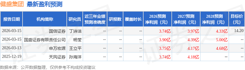 最新盈利预测明细如下: