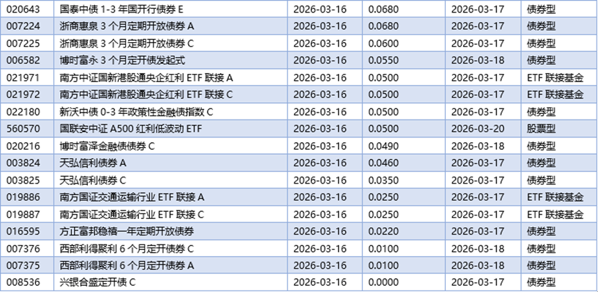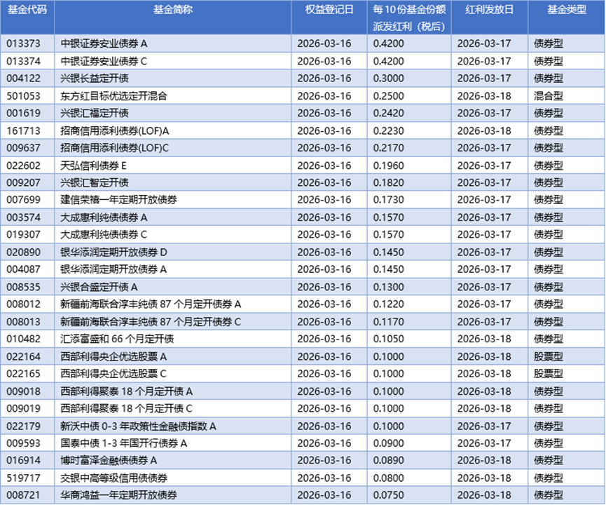 四、03月16日基金分红一览