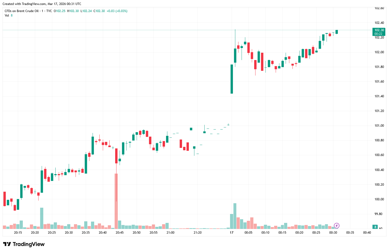 TradingKey - 北京时间8:30,国际原油价格拉升,WTI原油期货价格冲至95美元/桶上方,布伦特原油期货则攀升至102美元/桶,日内涨幅扩大至1.4%,地缘局势的紧张情绪成为推动油价上行的核心动力。