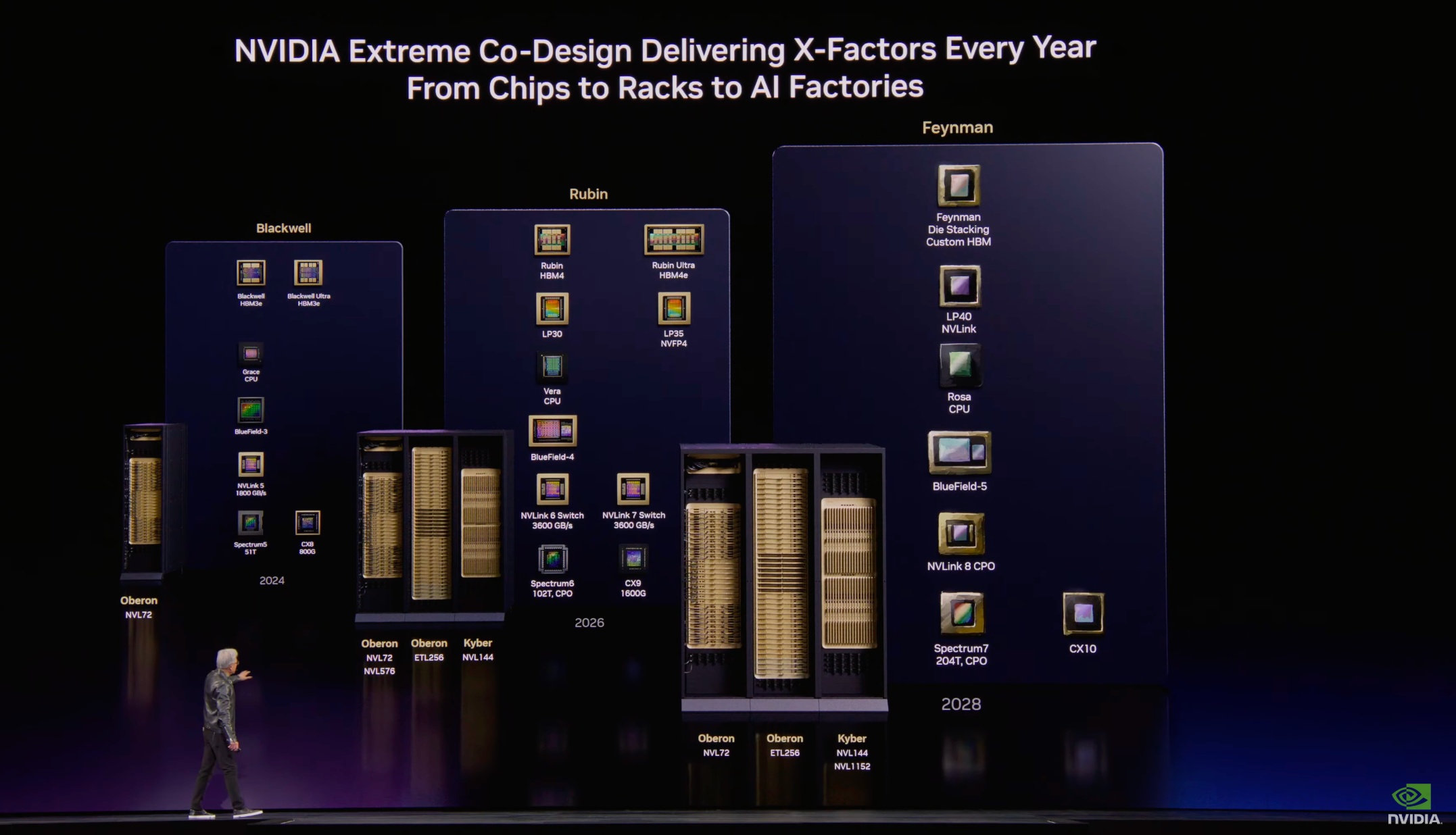 6)Feynman:全新 GPU LP40(LPU) Rosa CPU(以 Rosalind 命名) BlueField-5 CX10。