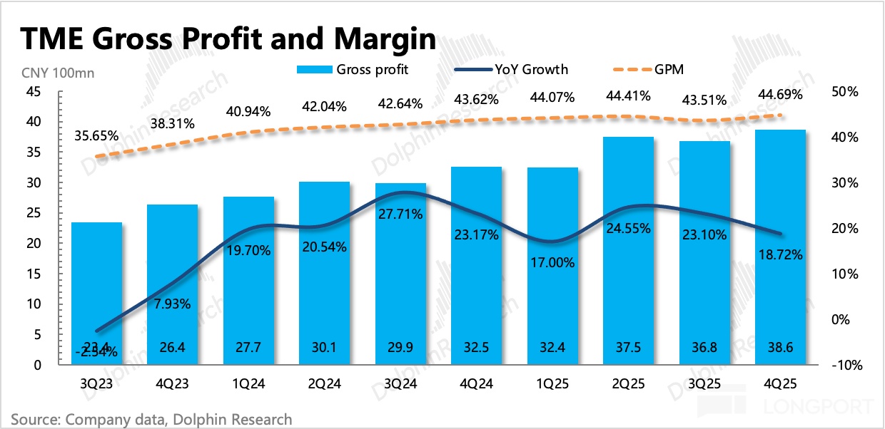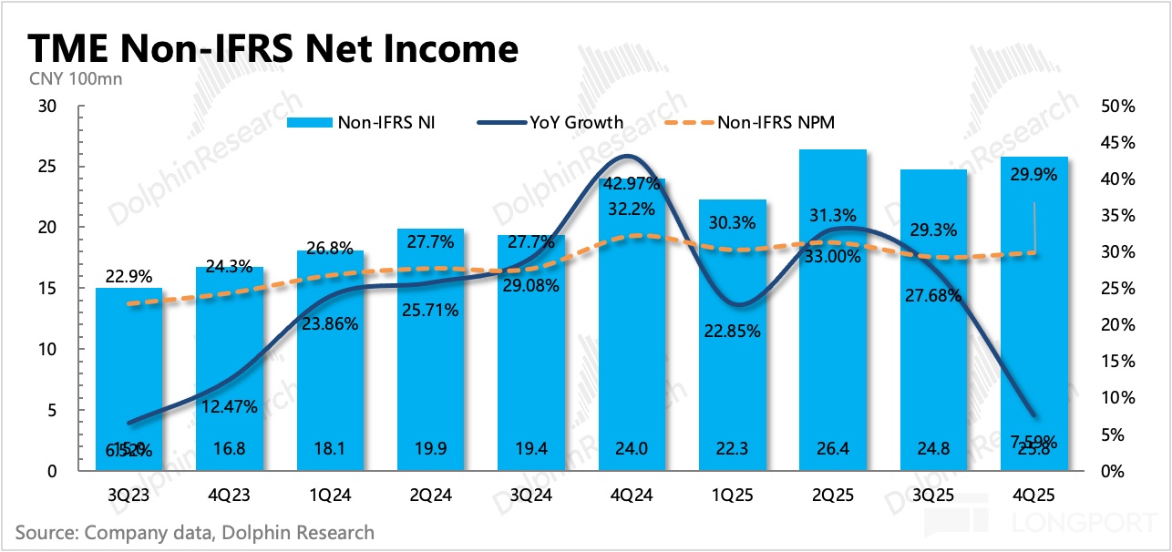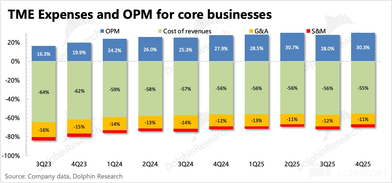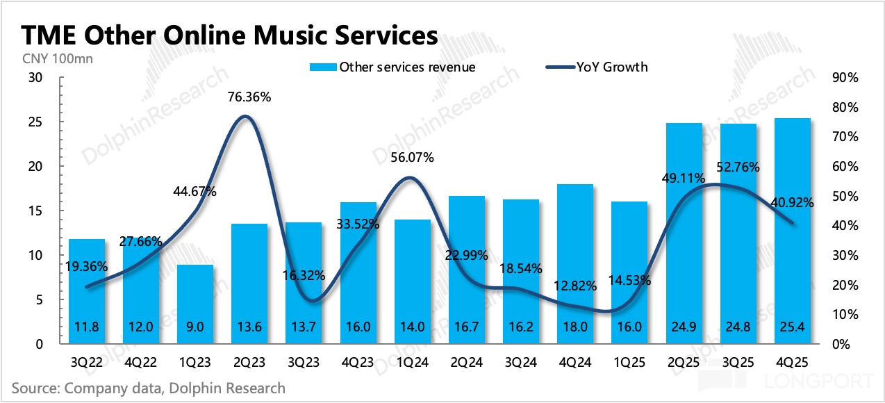 四季度其他音乐服务继续超预期,增速 41%,虽有放缓但仍属于高增长区间,目前已经占到了总营收的 30%。
