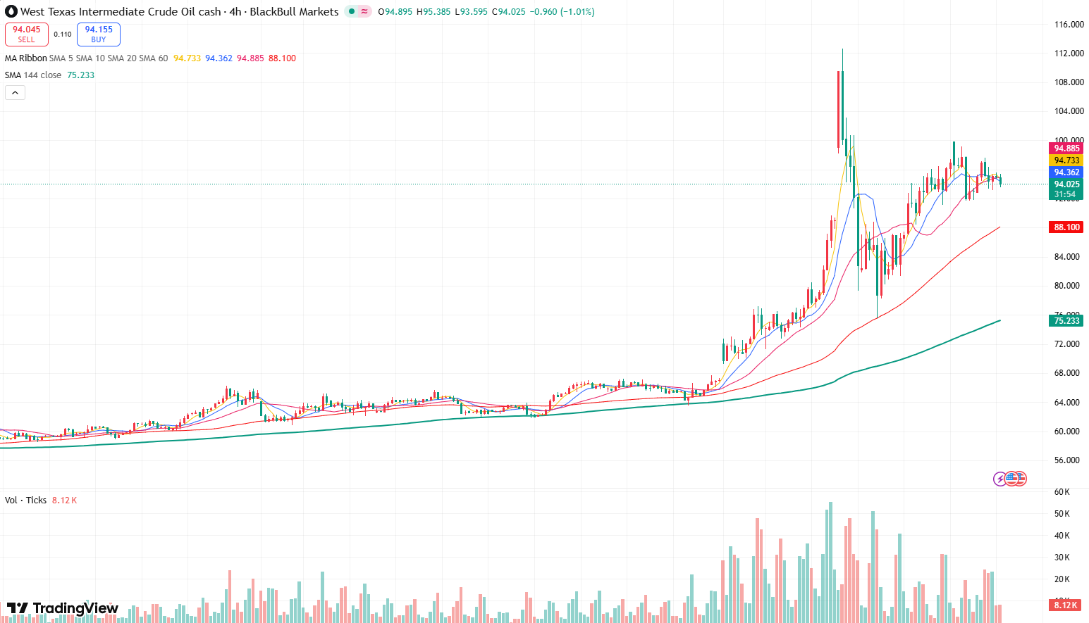 美方后续澄清称访华调整与霍尔木兹海峡通航无直接关联,但此类表态反而强化了市场的关联性推测,进而推动原油市场维持强劲涨势。WTI原油期货昨日最高涨幅达到5%,盘中最高触及97.57美元,布伦特原油昨日最高攀升至101.78美元。技术面显示,WTI的4小时图的中长期均线仍然维持多头排列,意味着中长期趋势仍然可能看涨,价格有望向上测试100美元关口。