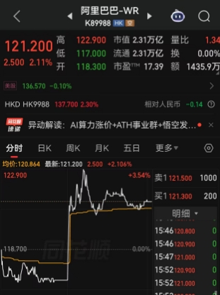 在涨价消息传来之后,午后原本跌幅近1%的阿里巴巴直线拉升,一度涨超4%,百度涨超2%。MINIMAX、智谱、金山云等港股算力概念股也纷纷大涨,MINIMAX一度涨超28%,最高触及1330港元/股,智谱、金山云涨超20%。在阿里巴巴等成分股大幅异动后恒生科技指数午后翻红,一度涨超0.5%。