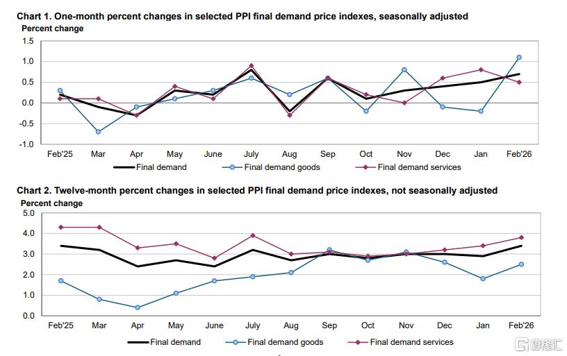 3月18日周三,美国劳工部公布2月PPI数据,美国2月PPI同比增长3.4%,创去年2月以来新高,高于市场预期的2.9%,前值为2.9%;环比增长0.7%,为2025年7月以来最大增幅,高于预期的0.3%,前值为0.5%。
