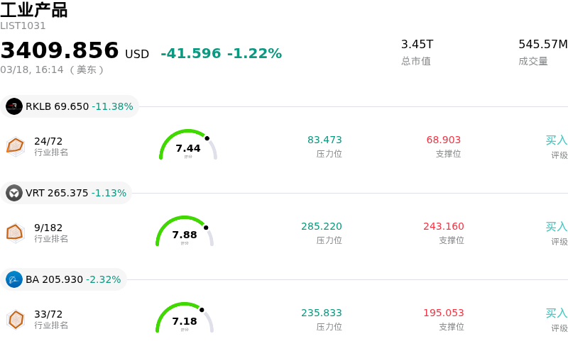 Albany International Corp (AIN) 收盘下跌3.01%, 所属行业工业产品下跌1.22% ,公司涨幅跑输行业涨幅,行业成交额前三股票 Rocket Lab USA Inc (RKLB) 下跌 11.38%;Vertiv Holdings Co (VRT) 下跌 1.13%;波音 (BA) 下跌 2.32%。