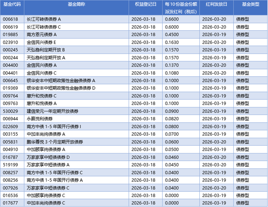 四、03月18日基金分红一览