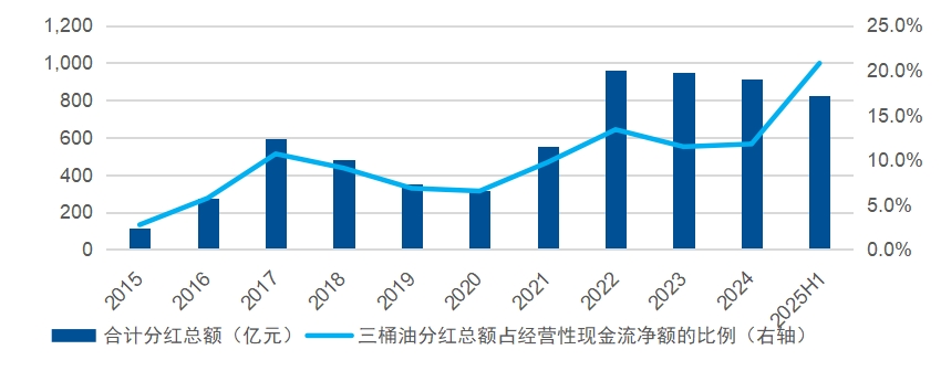 图:近年来三桶油分红占经营活动现金流净额的比例明显提升