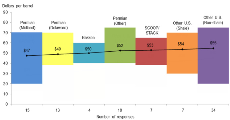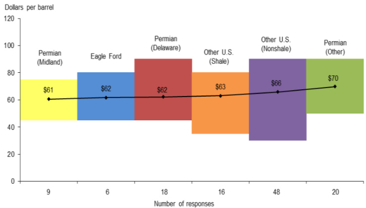 图:2018年Q1,页岩油公司盈亏平衡价格(WTI)