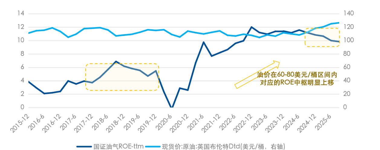 图:油价在60-80美元/桶区间内对应的油气产业ROE中枢明显上移