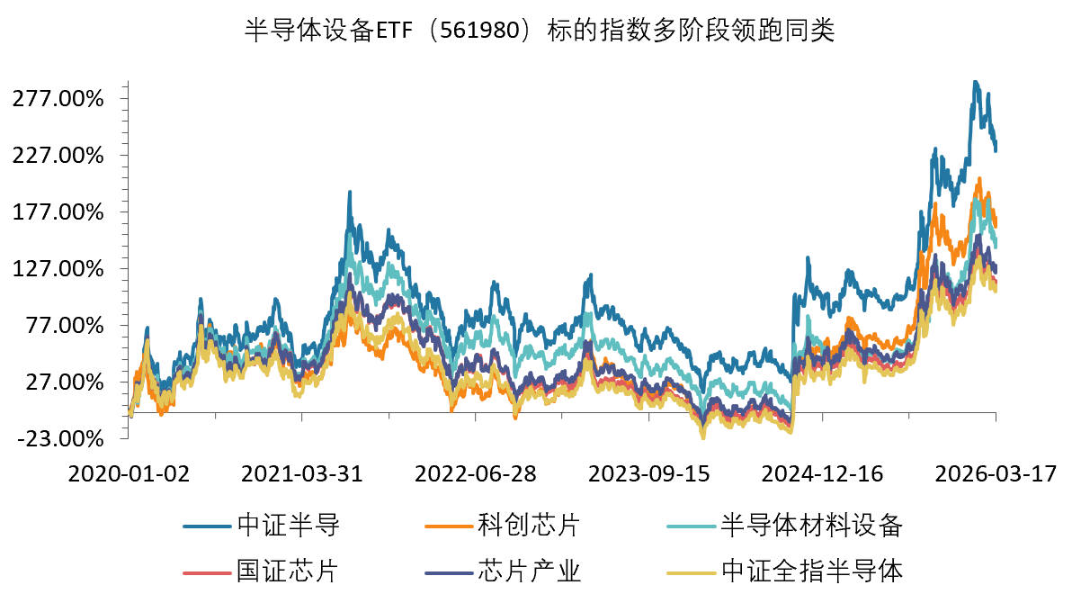 截至3月17日,该指数2020年以来累计上涨244%,2025年以来上涨68.72%,多阶段领先科创芯片、半导体材料设备等同类指数,凸显更强的反弹锐度,或在新一轮半导体上行周期中更具弹性。