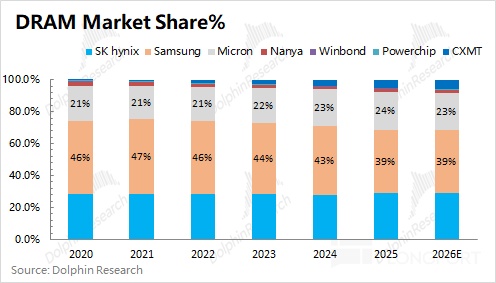 DRAM 是公司最为核心的业务,最主要的也是 HBM 和 DDR 等产品这两部分。