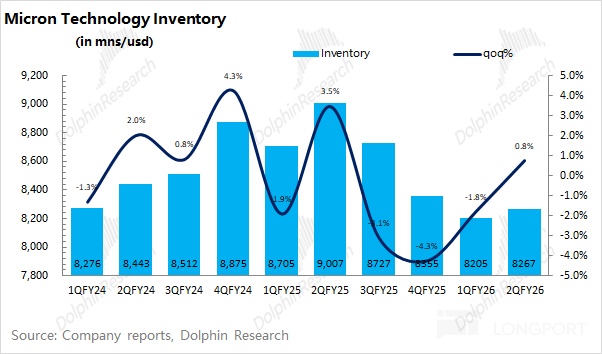 美光公司 2026 财年第二季度经营费用 16.2 亿美元,环比增长 7.3%。由于收入端增速更快,公司本季度经营费用率下降至 6.8%。
