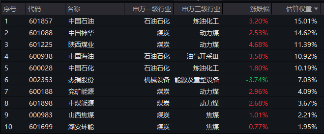 【能源ETF(159930)标的指数前十大成分股】