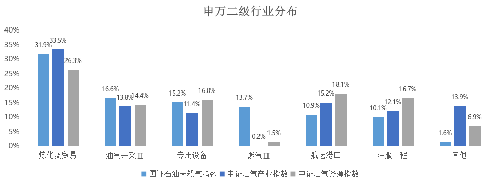 国证石油天然气指数由沪深北交易所的50家石油天然气产业相关上市公司的股票组成,成份股覆盖上游油气开采、中游炼化与销售、下游燃气输送等油气全产业链,能全面体现行业的景气变化,表征性较强。与同类指数相比,国证石油天然气指数主要有以下三个特点。