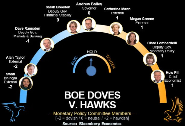 长期以来的鸽派成员丁格拉和泰勒被视为最有可能继续支持降低利率的人选。但也有受访经济学家预计,在副行长布里登和拉姆斯登于2月份支持更宽松的政策之后,这种紧张的投票分歧可能会延续下去。