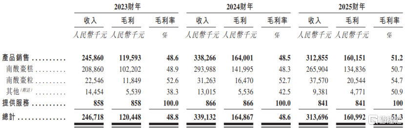 按产品类别及提供服务划分的收入、毛利及毛利率明细;图片来源于招股书