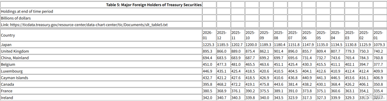 美国财政部公布的最新数据显示,前三大海外“债主”日本、英国、中国大陆1月同步增持美债超百亿美元,加拿大持仓大幅下降。