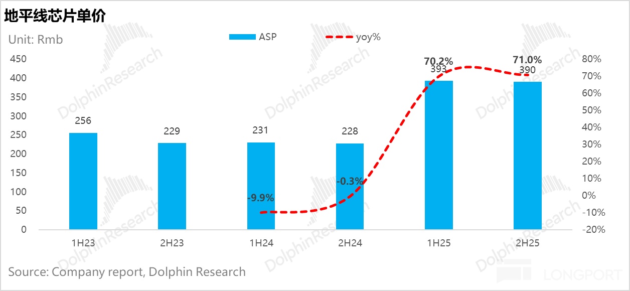 出货单价(ASP)停滞: 2H25 芯片单价约 390 元,环比 1H25 持平,大幅低于预期的 510 元。