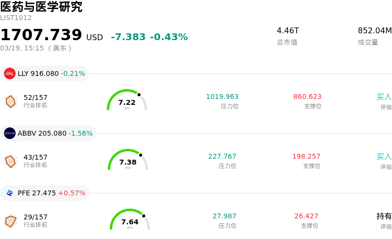 赛诺菲 (SNY) 盘中上涨3.07%, 所属行业医药与医学研究下跌0.43% ,公司涨幅跑赢行业涨幅,行业成交额前三股票 礼来 (LLY) 下跌 0.21%;艾伯维 (ABBV) 下跌 1.56%;辉瑞 (PFE) 上涨 0.57%。