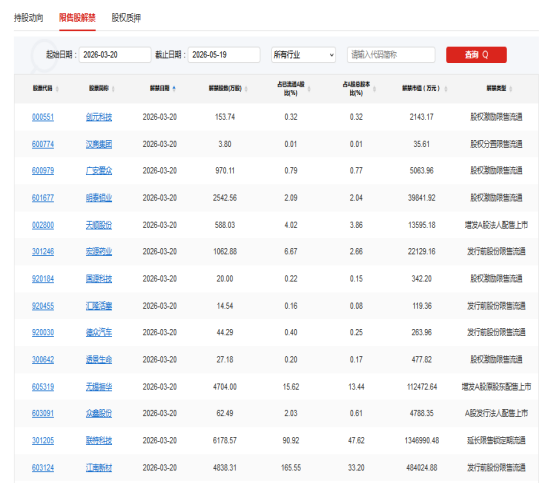 【限售解禁】