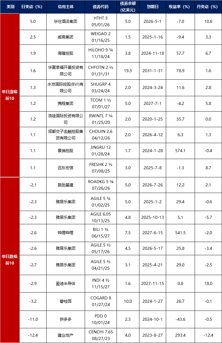 3. 中资美元债每日价格变动(截至3月19日收盘)