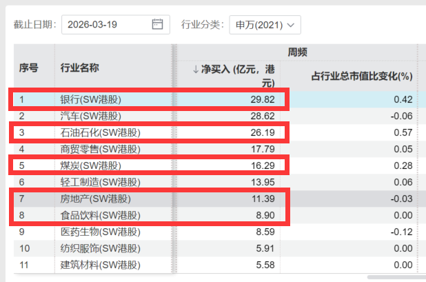 市场震荡,红利重回资金关注焦点!从南向资金流向来看,近一周,银行行业重回南向资金净买入榜首,且石油、煤炭、房地产等高股息板块也位居南向资金净买入前列!