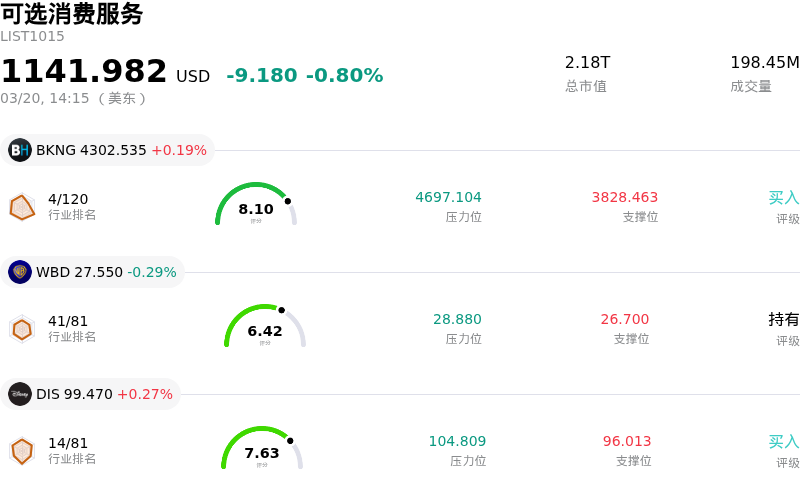 星巴克 (SBUX) 盘中下跌3.01%, 所属行业可选消费服务下跌0.80% ,公司涨幅跑输行业涨幅,行业成交额前三股票 缤客 (BKNG) 上涨 0.19%;华纳兄弟探索公司 (WBD) 下跌 0.29%;迪士尼 (DIS) 上涨 0.27%。