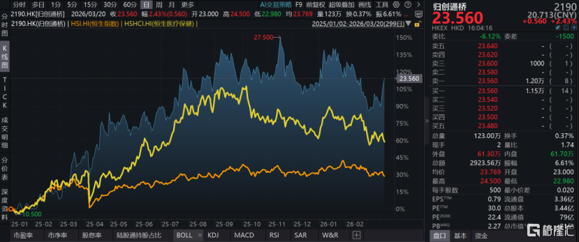那么,谁在认真答题?资本市场率先用脚投票。作为港股18A中率先“摘B”的高值耗材企业之一,归创通桥自2025年初至今,累计涨幅超100%,大幅跑赢恒生指数与恒生医疗保健指数。这一涨幅背后,是对公司在集采常态化背景下仍能实现高质量增长的预期兑现,也是市场对归创通桥未来“创新 国际化”双轮驱动逻辑的认可。