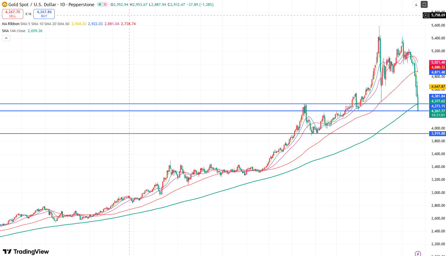 目前来看,黄金继续下行测试4270支撑位,若此支撑位置继续被跌破,黄金将向下测试4000美元关口,甚至可能跌破该位置下探3900美元。