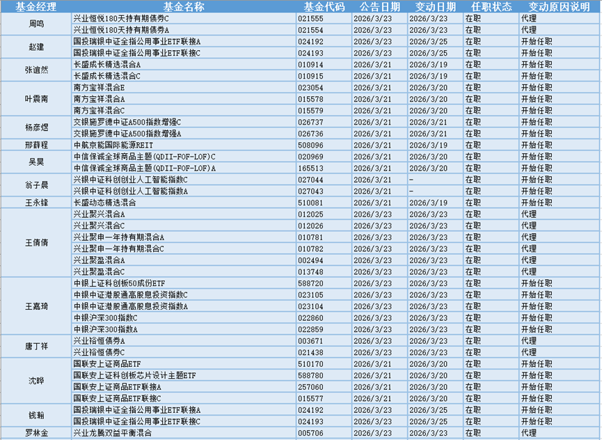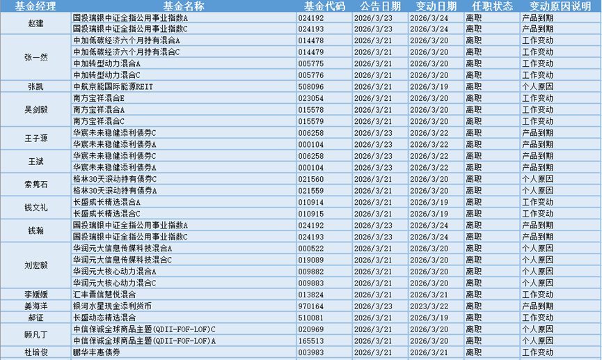 基金经理是一只基金产品最核心的成员,能决定一只基金的投资方向、投资策略以及投资风格,基金经理出色的择时选股能力和调研预测能力是基金业绩的有力保证,所以基金经理是投资者在选择基金产品时的重要依据。基金经理的变动很大程度上会影响到基金产品未来的表现,是一个需要特别关注的信息。3.21-3.23日共有37位基金经理发生任职变动。