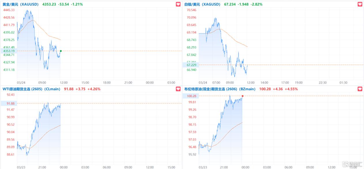 原油涨势再起。WTI原油期货涨幅超4%,报91.88美元/桶。布伦特原油期货上涨超4%,至每桶100.28美元。