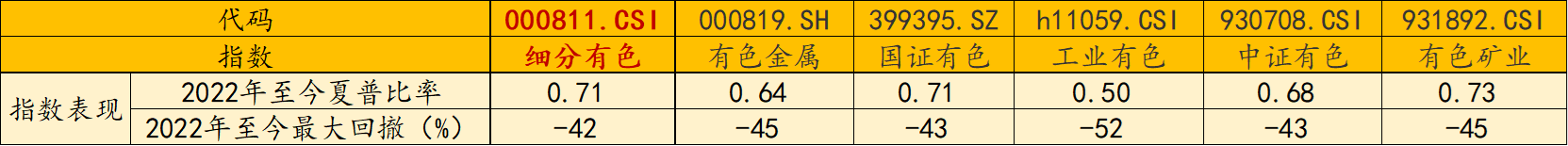 3、收益率表现更优:2022年至今,有色ETF汇添富(159652)标的指数夏普比率同类领先,且最大回撤同类更低,投资体验更好。