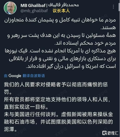被以色列媒体报道出的在巴基斯坦与美国特使谈的伊朗议长加利巴夫也立即做了切割,否认了与美国的谈判。(另有美媒报道特朗普政府正暗中评估伊朗议会议长加利巴夫作为潜在合作伙伴,甚至是伊朗未来领导人的可能性。)