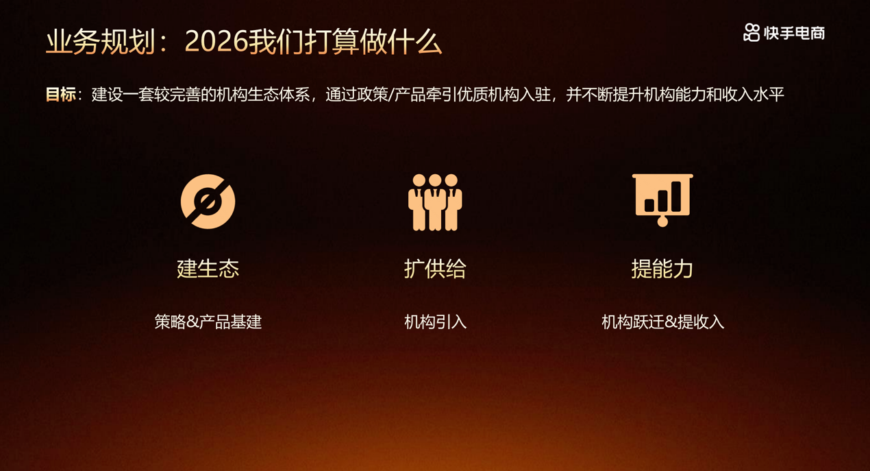 无论您是刚刚入局、希望了解电商机会的新机构,还是深耕多年、寻求突破的成熟伙伴,又或是希望更准确把握平台今年资源方向的探索者,快手电商都欢迎您的加入。在这里,您可以获得平台提供的具体支持与激励政策,也有机会结识真正在行业里做事的同行,彼此交流,打开思路。期待与更多机构伙伴一起,在电商领域共同探索、向前一步。