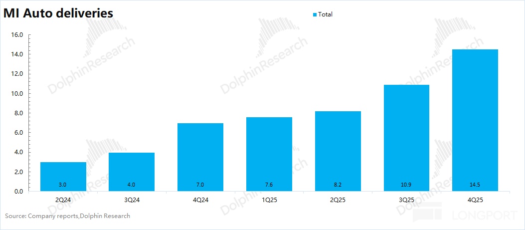 对于 2026 年,公司依然给出了 55 万辆的全年汽车销售目标。在 YU7 周订单回落至小几千(折合单月不足 2 万辆)、新一代 SU7 反响一般的情况下,公司要完成上述目标,还需要拿出更有竞争力的车型,或许是市场期待的后续增程车型。