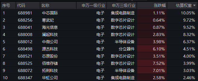 【科创芯片ETF汇添富(588750)标的指数前十大成分股】