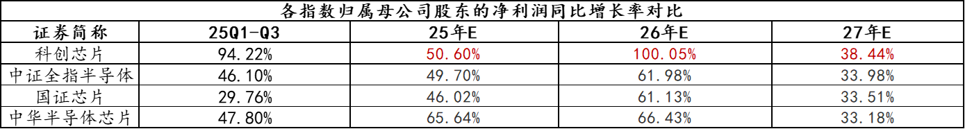 科创芯片50ETF(588750)标的指数2025年前三季度净利润增速高达94%,2026年全年预计归母净利润增速高达100%,大幅领先于同类,成长性更强!