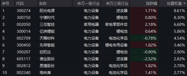 【电池ETF汇添富(159796)标的指数前十大成分股】