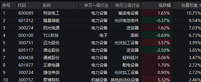 【光伏ETF汇添富(516290)标的指数前十大成分股】