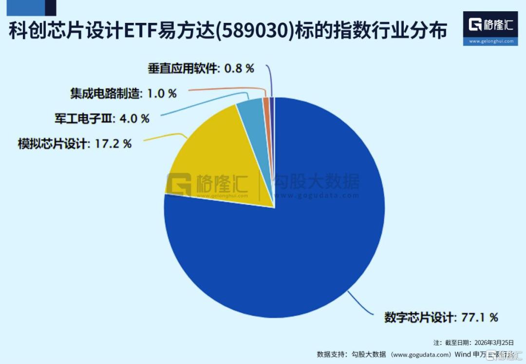 科创芯片设计ETF易方达(589030)跟踪上证科创板芯片设计主题指数,该指数与Toekn调用相关的AI芯片相关度最高,其中数字芯片设计权重占比达到77.1%,模拟芯片设计占比约17.2%;单日涨跌幅上限为20%,弹性大。