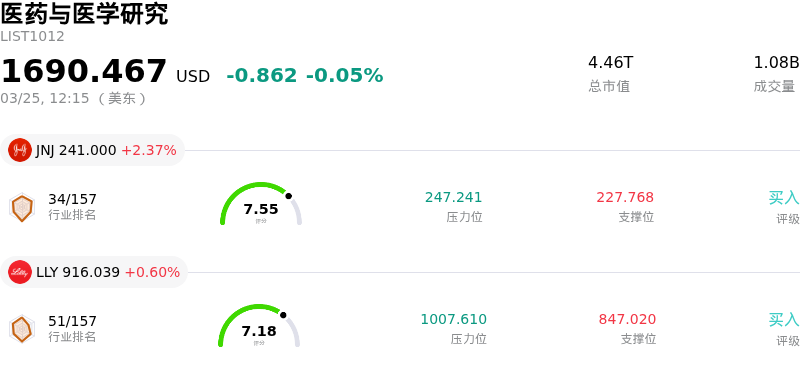 默沙东 (MRK) 盘中上涨3.24%, 所属行业医药与医学研究下跌0.05% ,公司涨幅跑赢行业涨幅,行业成交额前三股票 Terns Pharmaceuticals Inc (TERN) 上涨 6.34%;强生 (JNJ) 上涨 2.37%;礼来 (LLY) 上涨 0.60%。