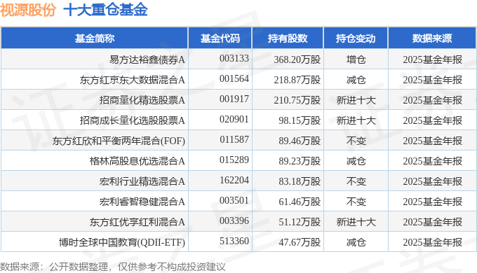 持有视源股份最多的基金为易方达裕鑫债券A,目前规模为60.5亿元,最新净值1.793(3月25日),较上一交易日上涨0.85%,近一年上涨15.05%。该基金现任基金经理为胡文伯。