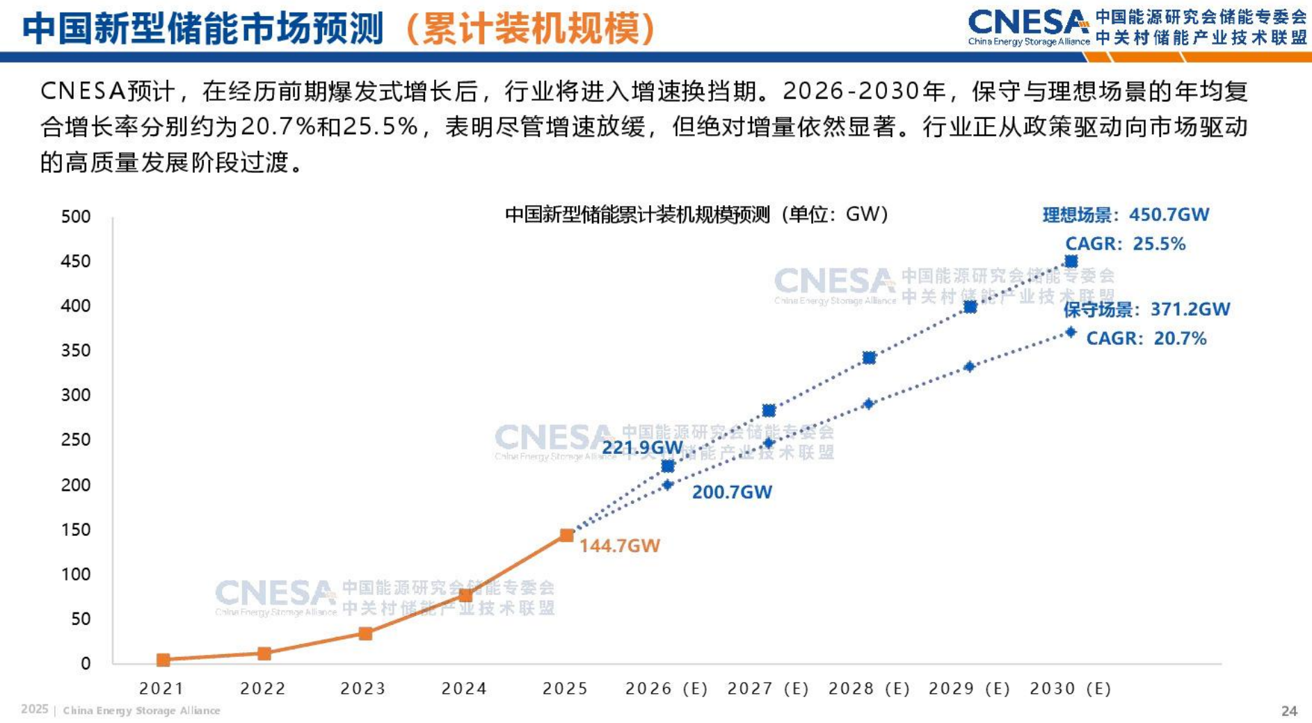 储能网数据显示,2026年前两月中国新型储能新增投运装机规模达9.71GW/24.69GWh,同比分别增长136%、122%;2025年全年新型储能新增投运装机规模为64.6GW/196.5GWh,同比分别增长87%、120%。