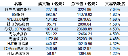此外,6G、WEB3.0、光模块指数在算力需求提振下获资金火热关注,光芯片等半导体指数同样交易活跃。