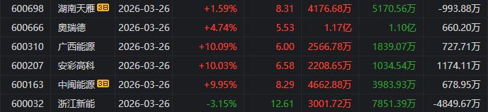 东北猛男:净买入华电能源4779.55万元、明阳智能6504.46万元,净卖出金开新能7793.13万元