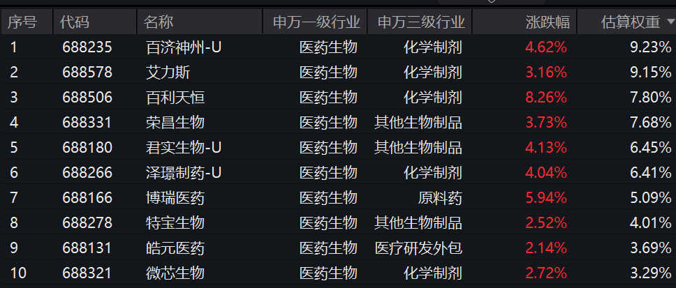 【科创创新药ETF汇添富(589120)标的指数前十大成分股】